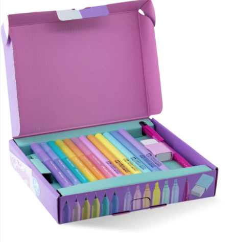 Kit perfeito da Faber Castell para presentear quem você ama ou a si mesma! Kit Candy todo em tons pastéis com 6 Marca Textos Grifpen, 6 Fine Pen Colors, 1 Lapiseira Bubble Rosa e 1 Borracha FC Max Rosa Pastel com a qualidade tradicional da Faber Castell. Ótima durabilidade e um estojo quase completo de uma vez!